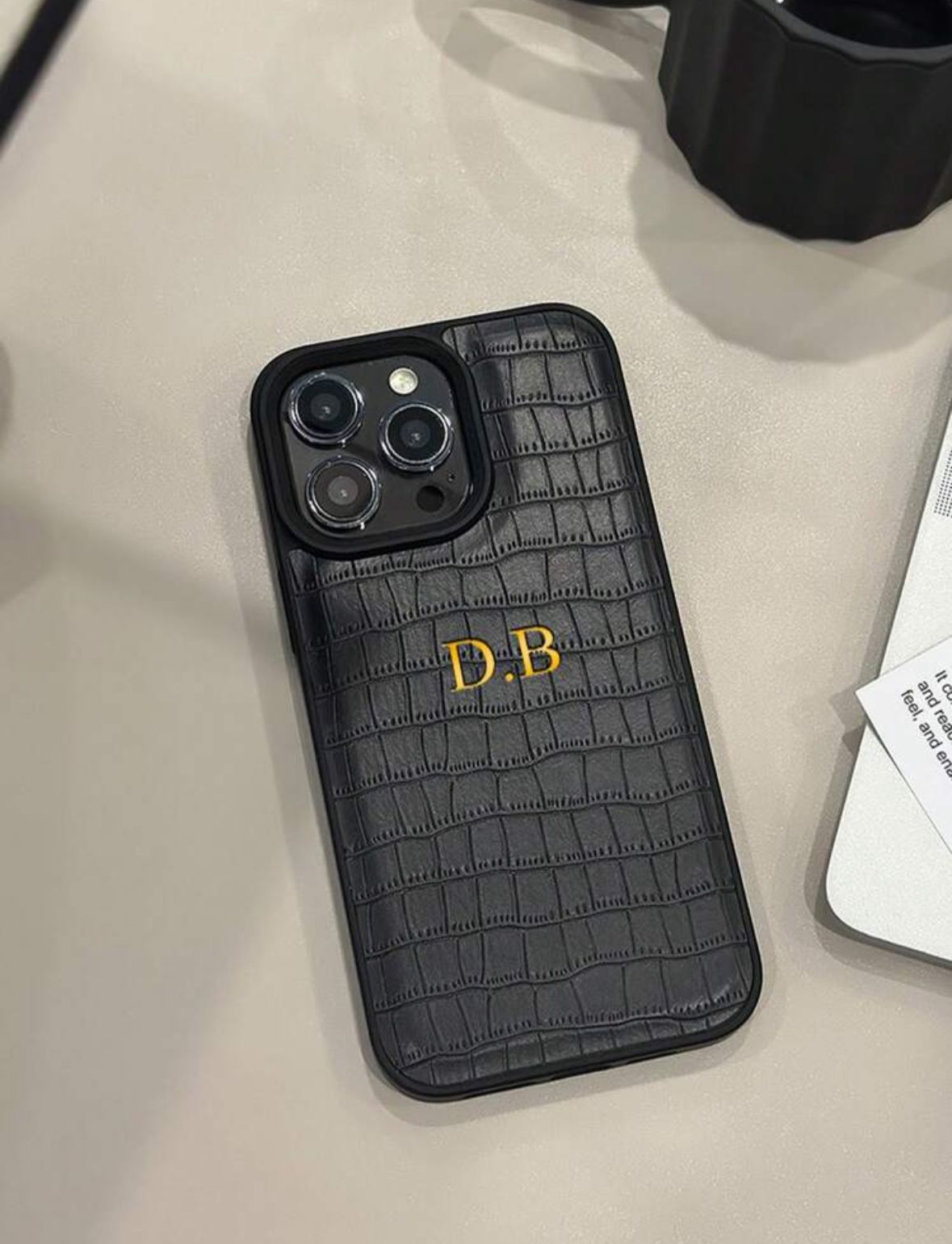 Personalize your iPhone with luxe leather and engraved gold initials. Designed to impress and protect.